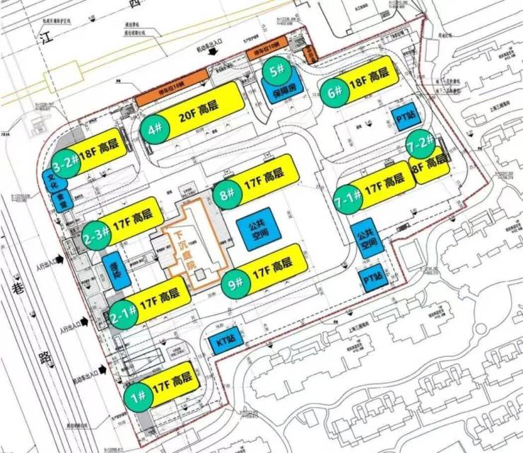 地块占地约3.46万方,容积率2.2,根据设计方案显示,项目拟建8幢17-20层的高层,1幢8层住宅,以及1幢保障房;