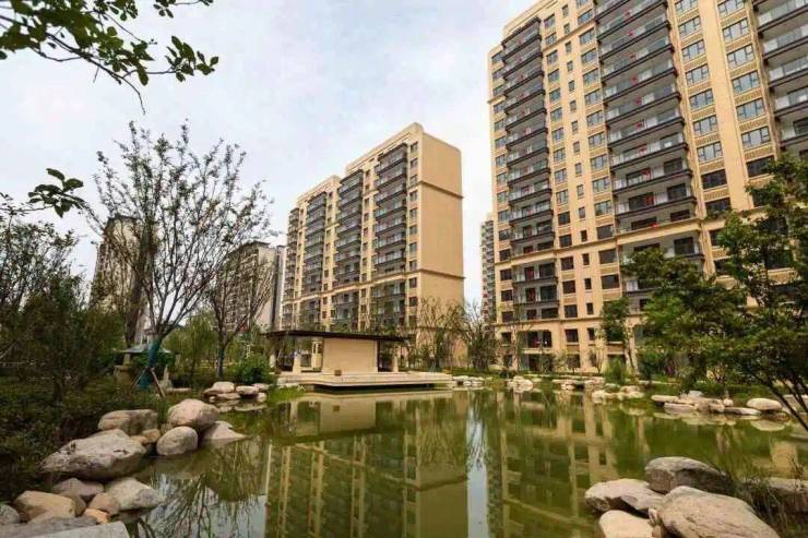 一湖三园的格局,1300平方米的人工景观湖如一面明镜,倒映着蓝天白云和参天树木,给居民带来了片刻的宁静与舒适。