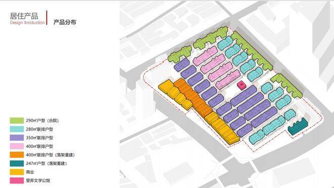 项目总可售面积约4万㎡,包含121套可售低密住宅,产品面积段为245-758㎡,产品涵盖1-3 层的里弄住宅,有天有地有院子,房型以 3-4 房为主,并规划有满足高净值人群社交圈层需求的多功能会所,是市区少有的里弄风貌别墅。