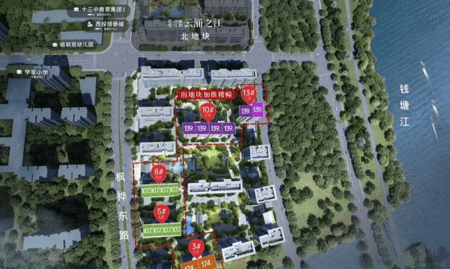 学校:家对面是学军小学云栖校区,2022年已开学,师资和本部打通;钱塘枫雅中学,拟引入十三中,目前在建;注意新房无学区,需等交付后由教育部门划分