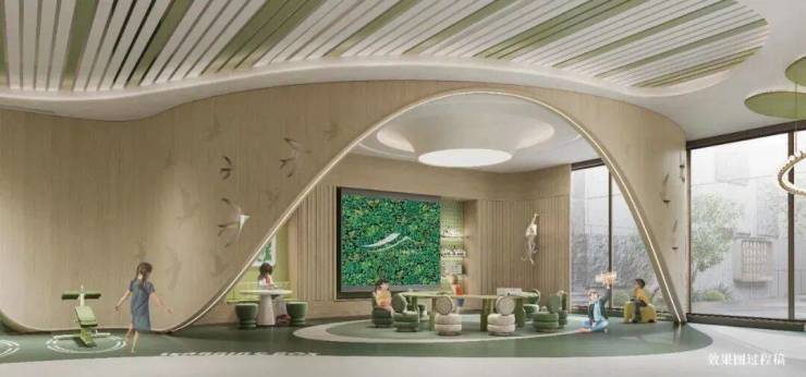北地块配置童玩主题会所,娱乐、体测、影音、学习空间一应俱全;南地块则是运动会所,由健身房、恒温泳池、室内篮球场和下沉式庭院组成,未来交由业主免费使用。