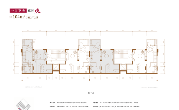 建面约104㎡3房2厅2卫(一层下叠):