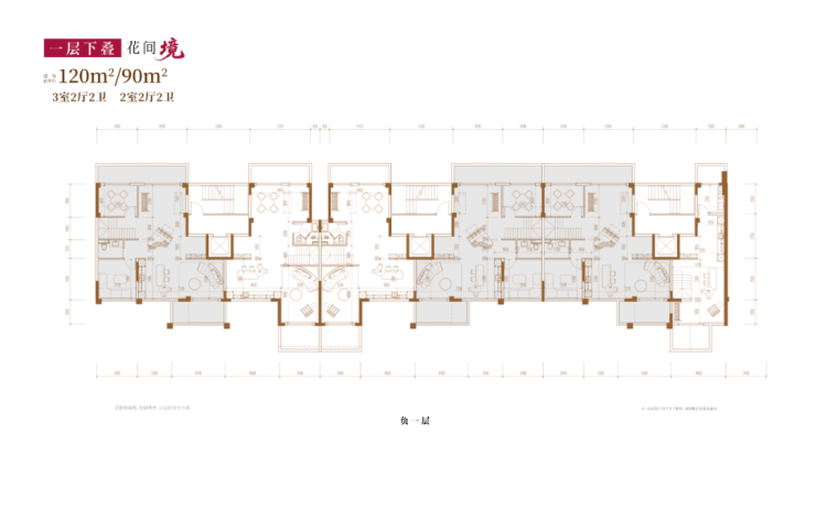建面约120㎡3房2厅2卫/90㎡2房2厅2卫(一层下叠):