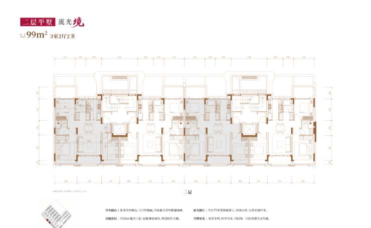 建面约80㎡2房2厅2卫/110㎡3房2厅2卫(二层平墅):