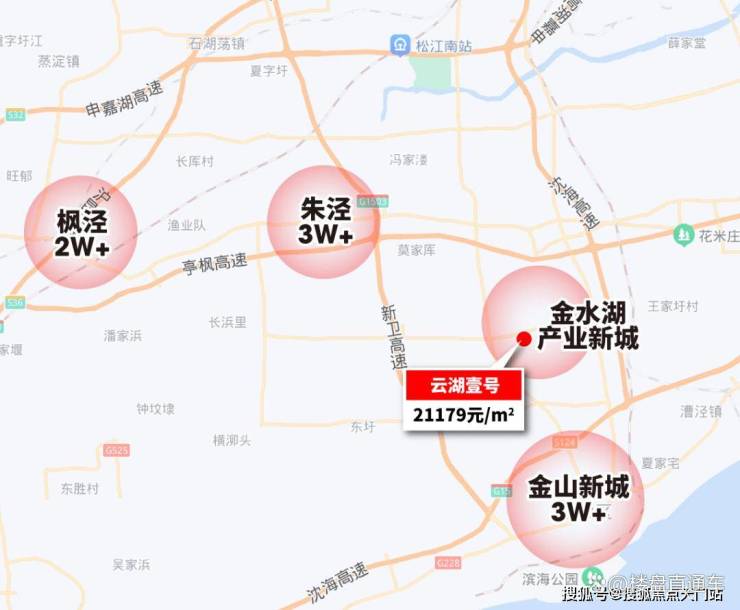 价格优势:金山新城板块-金山朱泾均价3万+/平。金水湖2万+/平。