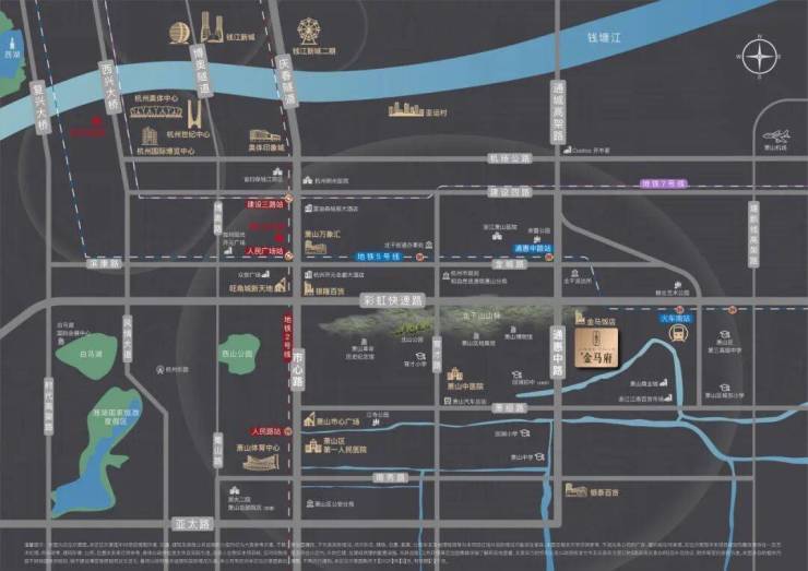 望金马府,以约1.2罕见容积率的姿态,落址萧山千年贵脉,坐享醇熟烟火气,北望北干山苍翠,东临商城河潺潺,与萧山最早的五星级酒店——金马饭店仅一路之隔。