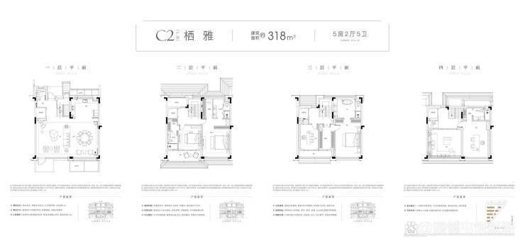 ▲排屋C2户型图|建筑面积约318m²