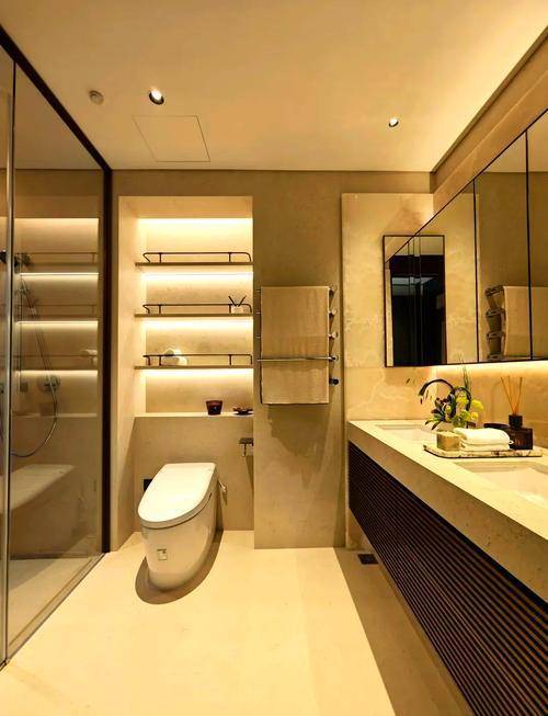 项目层高突破传统住宅达到约3.3米,空间感奢阔!搭配墙面、地面选用的米白色天然石材,通透造型空间尽显高定气质。玄关处做了极简分区收纳空间,美观大气且实用性更强!