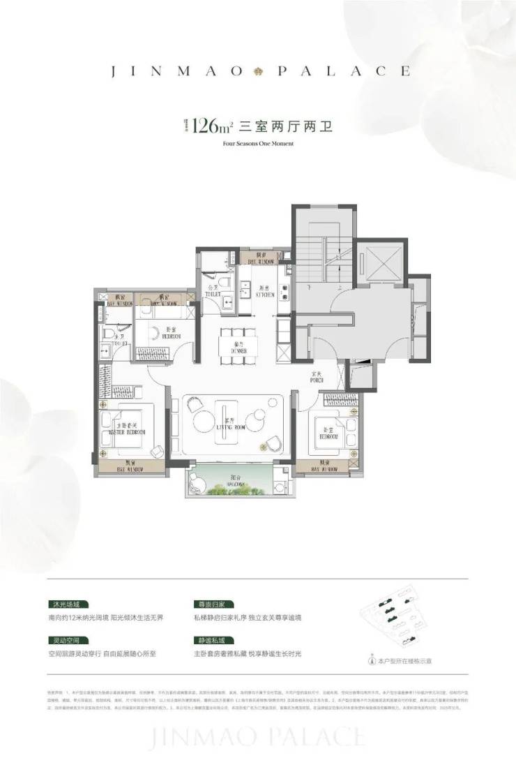 ● 建面约126㎡横厅3房:一步到位顶奢3房,全杨浦没有竞品。
