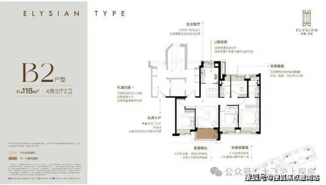 约118m²四房两厅两卫(B2户型)