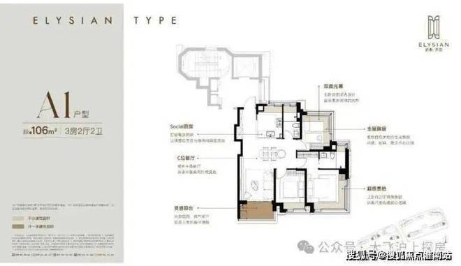 约106m²三房两厅两卫(A1户型)