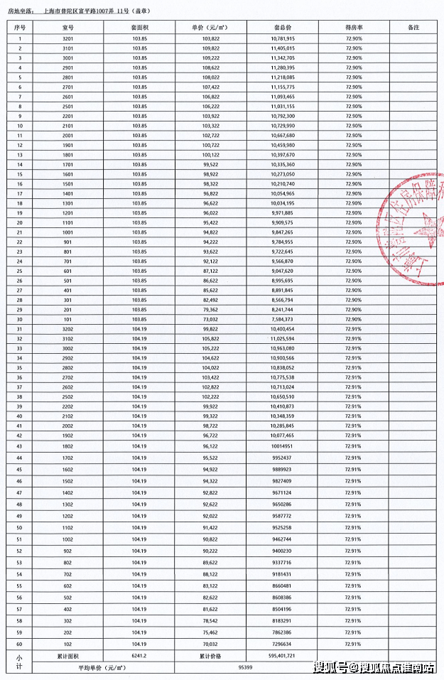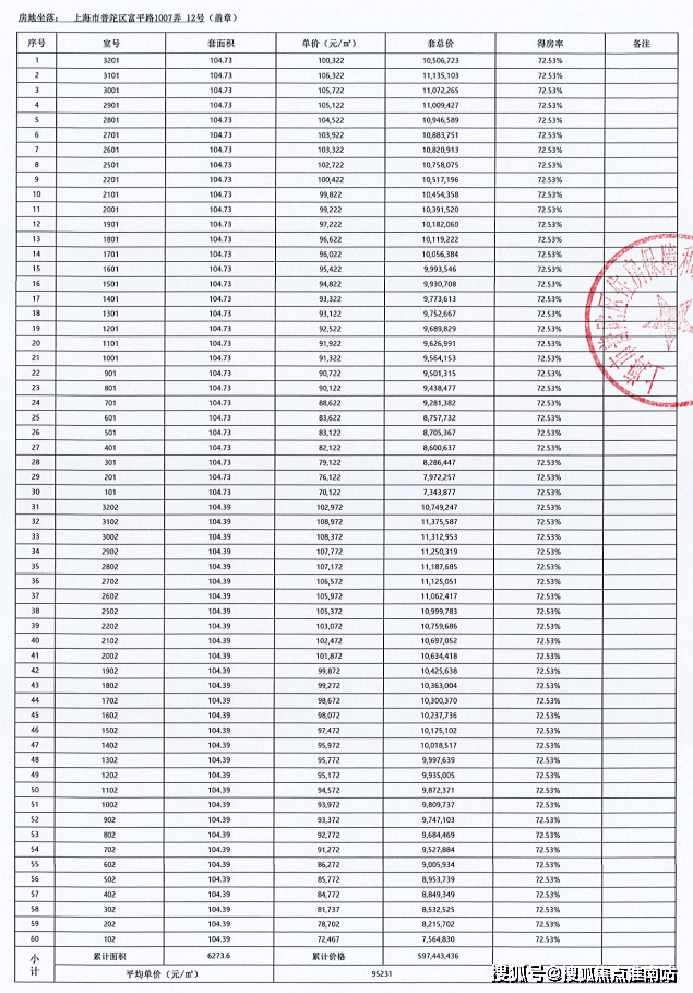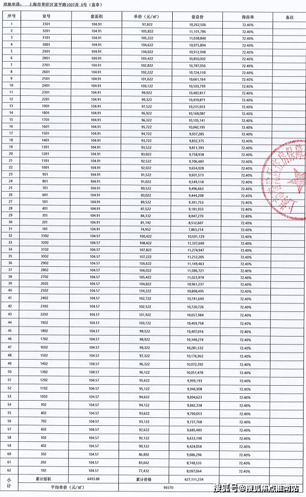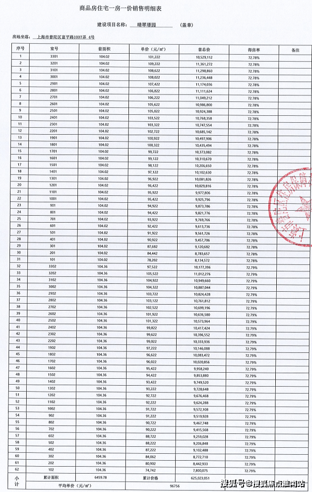 附完整一房一价表: