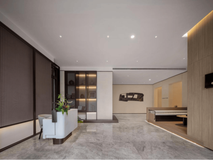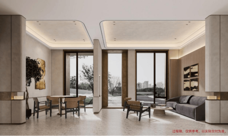 第二重首层大堂,由国内顶级设计单位无间操刀,整体呈现高级的品位感。设休闲区与软垫沙发,为稍事休息的业主或访客提供舒适的洽谈空间。