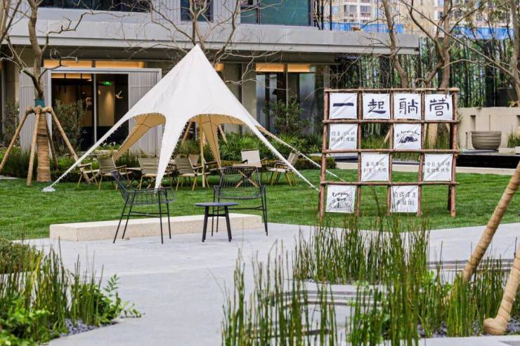 内部生活场景及配套也非常丰富:阳光草坪,搭个天幕就能露营;心爱的“毛孩子”也有了玩耍的去处;边上还有小朋友的戏水池,挽起裤腿就能踩水玩。