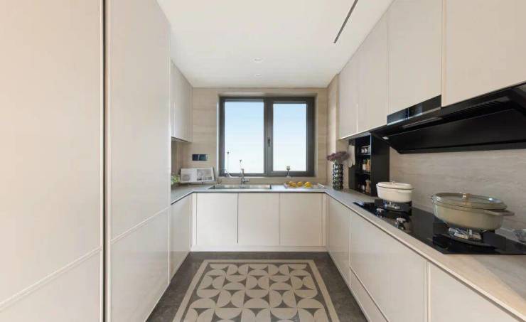 厨房配置:全套博世厨电四件套(吸油烟机、灶具、洗碗机、蒸烤一体机)、怡口末端净水器、摩恩垃圾处理器(或同等档次品牌),让烹饪成为一种鼎级享受。