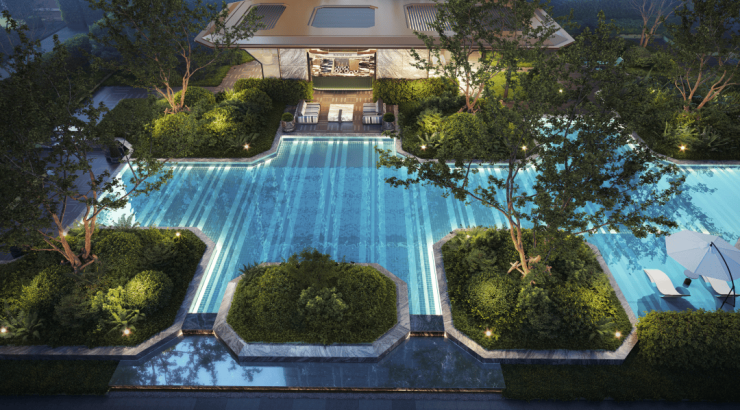 漫步社区,流动的诗篇则在脚下展开。项目在社区内部打造了一片足以媲美星级酒店的内藏“城市度假式”园林景观。尤其是那令人惊艳的超奢戏水池,碧波荡漾,与周边葱郁的绿植交相辉映,营造出浓郁的隐奢度假氛围。