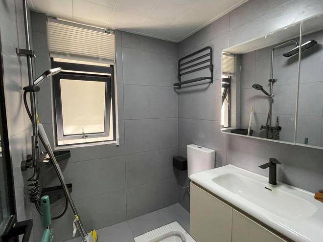 厨房根据结构定制了白色的橱柜,白色的橱柜显得比较干净,也比较令人喜欢。同时,考虑到需求,安装的是集成灶,功能性更强,油烟处理,年轻人效果会更好。可以想象一下,在这样的厨房做饭菜,非常有心情啊!厨房安装的瓷砖来灰色的,比较耐脏,搭配起来也比较好看,很协调,给人的感觉很舒服。