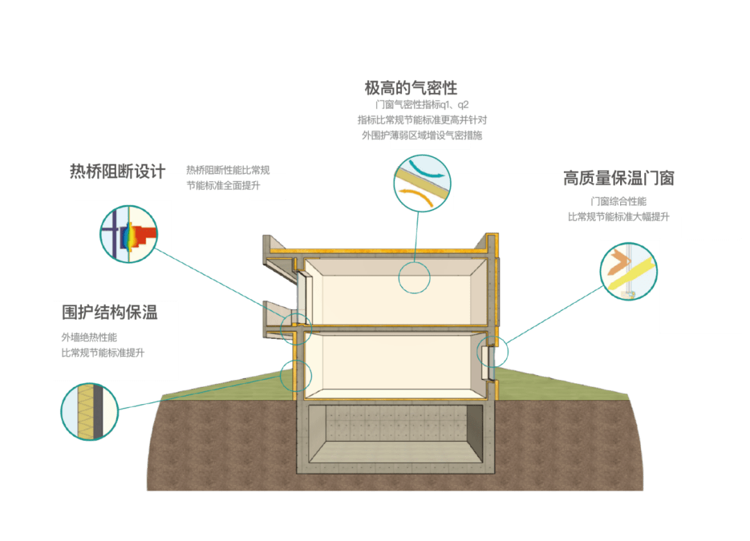 外墙保温结构一体化设计、从门窗气密性进阶为整体建筑气密性、带全热回收装置的新风系统等节能减排系统的设计,让居住更舒适,更健康。