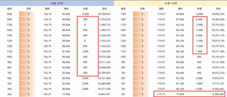 118和125m²的单元,边套同样价差微弱,也建议从上往下选;中间套高区有性价比,低区可捡漏。
