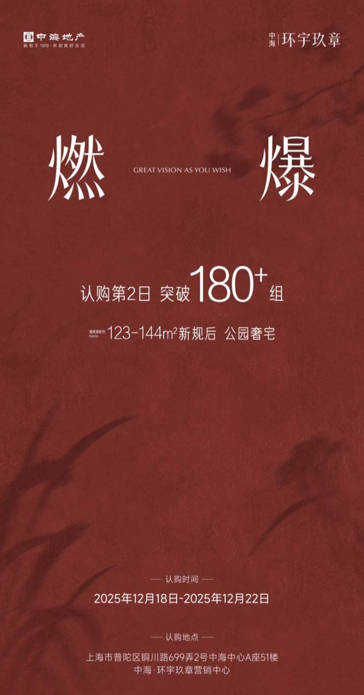 中海环宇玖章认购第2天突破180+组客户,认购率超200%,真金白银为玖系产品投票。