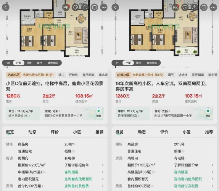 表面上二手单价可能更低,但你“买的建面”更多,综合下来空间效率并不占便宜。