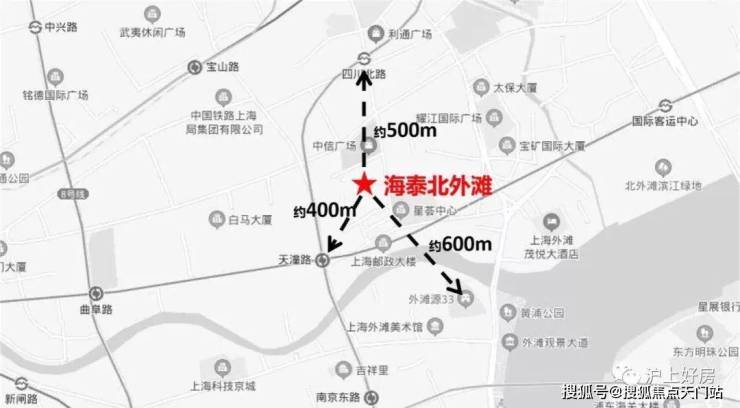 「海泰北外滩」位于虹口区四川北路塘沽路(江西北路以东,塘沽路以南,四川北路以西和规划七浦路以北), 距离外滩源仅有600米。