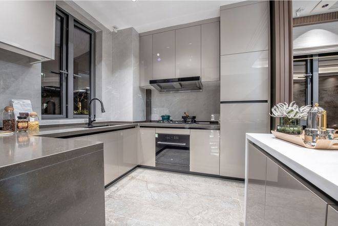 客餐厨顺势衔接、浑然一体,无一丝多余设计,美好生活的理想画卷徐徐展开。窗外高楼林立映江景,涛声阵阵入庭来,在这天然背景中,我们化身生活的主宰,肆意挥洒灵动笔触,为日常添彩。