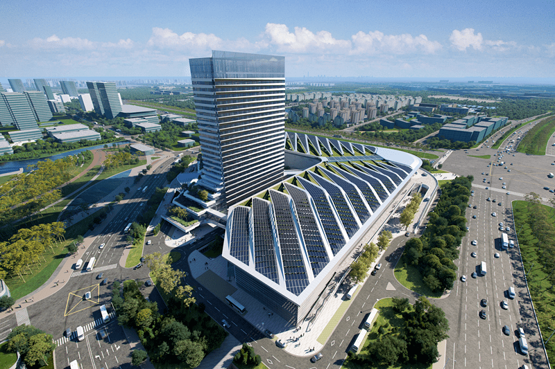 项目以行业先进的绿建三星和超低能耗标准,打造尊重生命、自然永续的理想生活之境,通过区域自然形成的十字水系和街区规划,构建以“玖海云天”为中心的未来城市生活圈,全面勾勒出充满想象力的划时代未来之城。