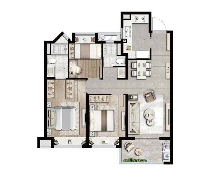 整体以现代自然主义为基调,借自由开放的空间美学与个性家居布置,诠释简约松弛的生活哲学。