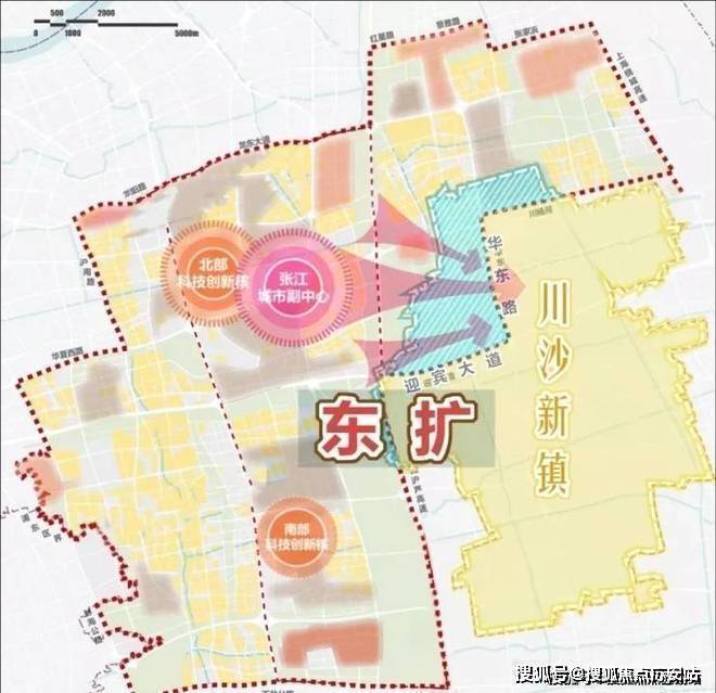 “川沙2035整体规划”中,川沙发展目标为:“形成以国际交往、旅游度假、历史文化及生态休闲为主导的浦东中部地区活力高地。”这恰好川沙与张江科学城在向东拓、国际旅游度假区在向东扩、东方枢纽在建三大动作遥相呼应。