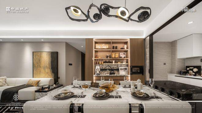 餐厅亦是如此,可以打造岛台,亦可以轻松摆下6-8人桌,侧边还可以打造一整面的餐边柜,假如吃饭的时候突然来了兴致,想小酌一杯,转个身就可以打开柜子,露出一面墙的美酒,精心挑选出一瓶,为客人满上。