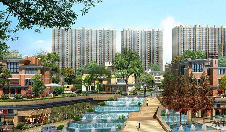 292、效果图:一种表现建筑外立面、小区景观等的平面图片。