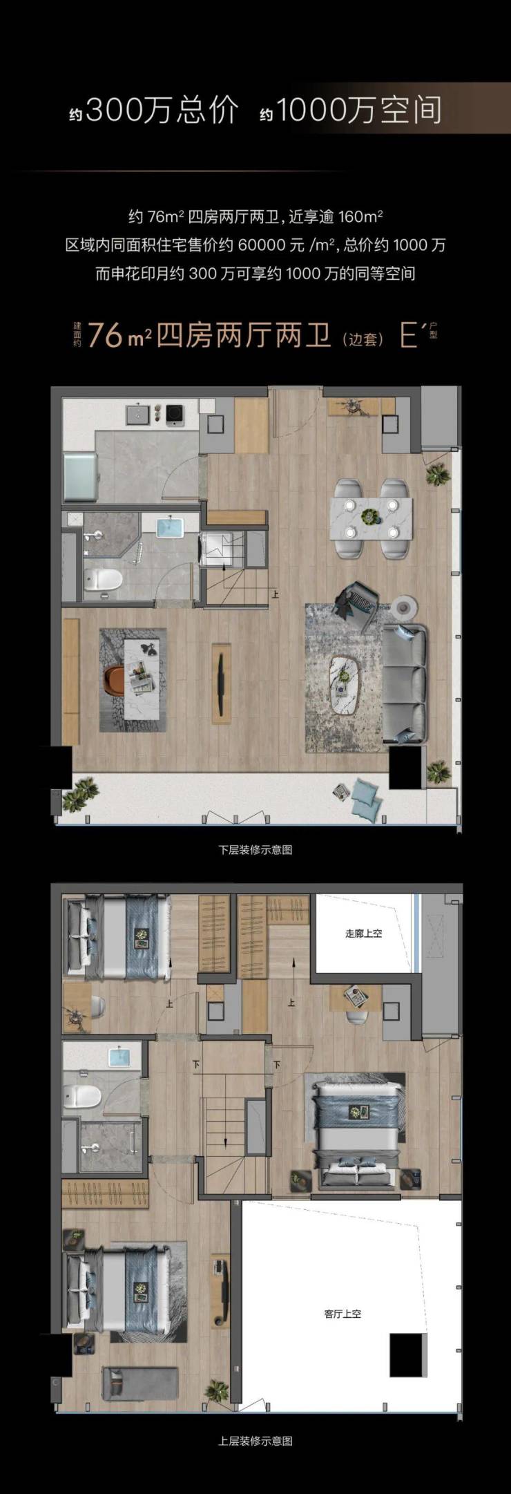 申花印月:珍藏8席空中跃墅!申花“中央豪宅区”总价约260万上下两层实得150方精装现房!