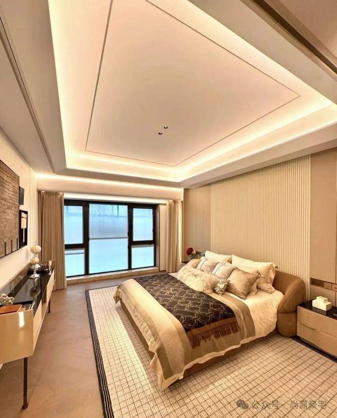 299.71㎡户型(11层):总价约5395万,单价180000元/㎡。大横厅设计搭配超大采光面,客餐厅南北分布,动静分区合理;全套房配置保障居住私密性,主卧朝南采光优越,书房与主卧相连,形成独立的静谧办公空间;次卧连接阳台,通风采光俱佳,满足家庭起居与社交需求。299.71 square meters户型 (on the 11th floor): The total price is approximately 53.95 million yuan, with a unit price of 180,000 yuan per square meter. The large open-plan design is combined with an extremely large light-catching surface. The living room and dining room are located on the north and south sides respectively, with a reasonable division of activities and rest areas. The full suite configuration ensures the privacy of living. The master bedroom enjoys superior south-facing lighting. The study is connected to the master bedroom, forming a separate and quiet office space. The secondary bedroom is connected to the balcony, with excellent ventilation and lighting, meeting the needs of family living and social activities.