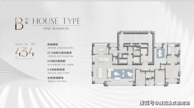 户型面积:建面约435㎡、580㎡奢阔大平层,部分户型为两梯或三梯一户设计2