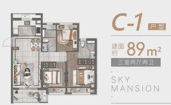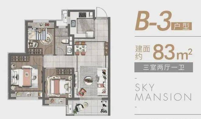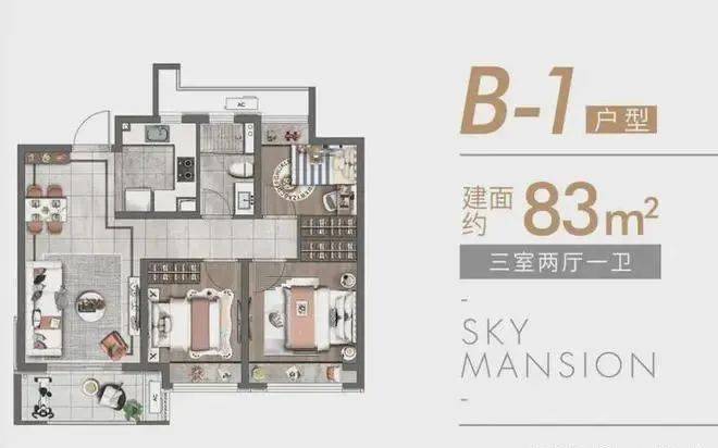 除了建面约89㎡的洋房,建面约83~89㎡高层户型也各有所长,均是三房设计,无论是从结构布局,还是空间利用皆相得益彰,承载一家人的美好生活。高层户型如下: