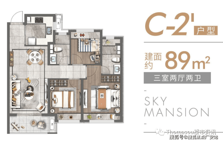 89-square-meter high-rise with 3 bedrooms, 2 living rooms and 2 bathrooms: Total price: 3.3-3.7 million yuan