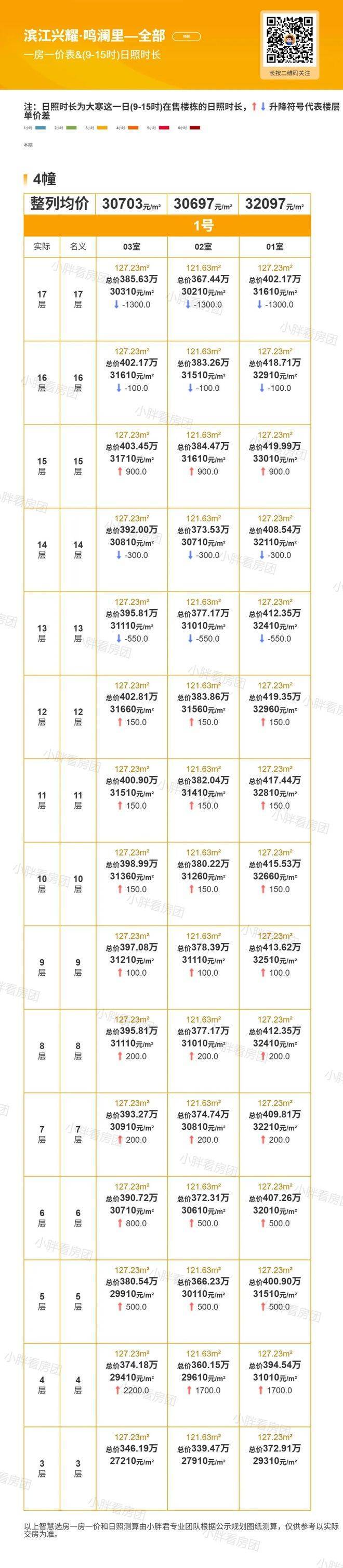 12月3日,拱墅区运河新城红盘滨江兴耀·鸣澜里公示二开预售证,4#,共45套房,面积120~126方,均价预计3.1172万/平!
