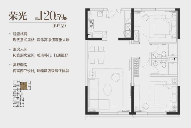 D|荣光|建面约120.59m²|两室两厅一厨两卫