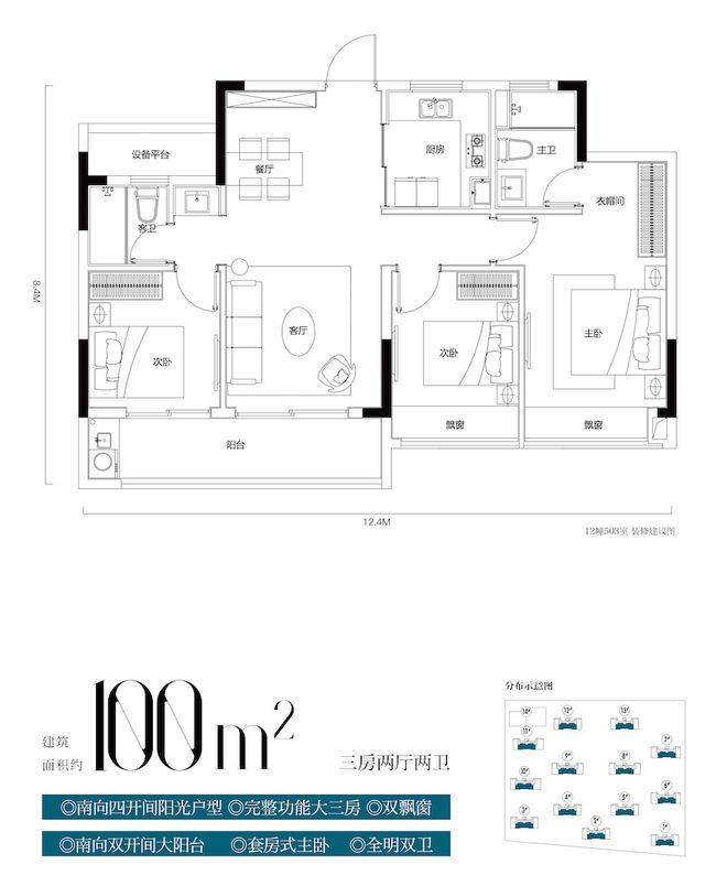 |建面约100方户型实景图