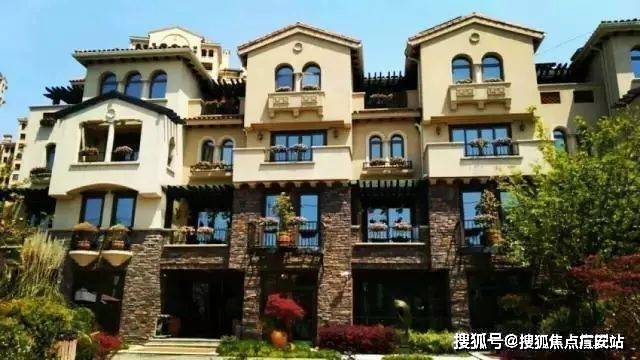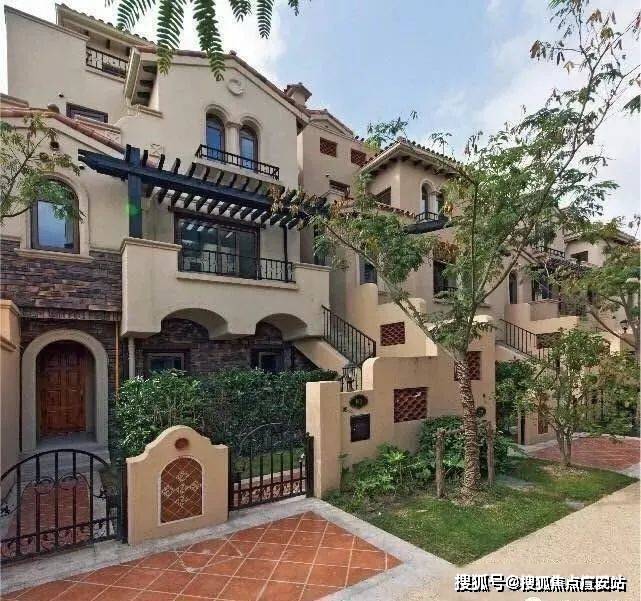 采用南加州的建筑风格,外立面采用文化石和暖黄色涂料,搭配红色的筒瓦、烟囱、铁艺栏杆等建筑,尽现南加州原乡风情。