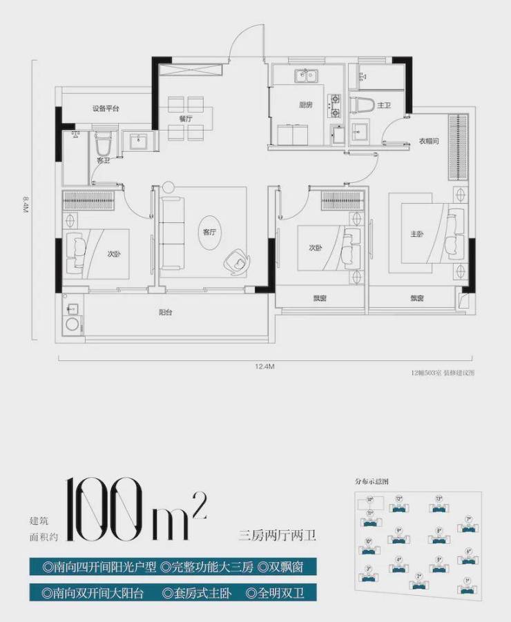 天阳·湖与舍有建面约100-128方三个户型,共同特点就是大面宽,特别是建面约100方户型,又一次刷新了行业对户型的认知。