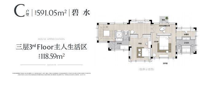 ※二层、三层可实现最多6个卧室套房的设计,做到家庭成员平权,满足多代同居的世家门第。不仅有子女套房+长辈套房,还有足足136㎡的总统级主人套房,涵盖大露台+卫生间+双书房+男女主人双独立衣帽间+休息室等。