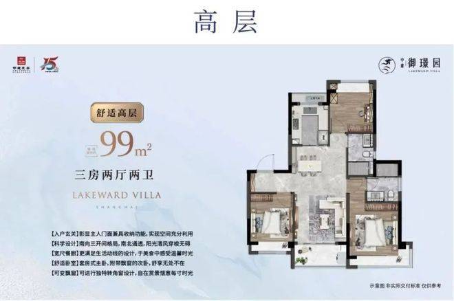 超大采光面宽:经典飞机户型,三开间朝南+南北通透,大面宽设计保证了优秀的采光和通风效果。