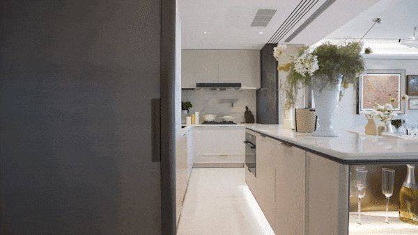 精装标准同样对标高端改善定位,厨房配备全套嘉格纳厨具与大金专用空调,卫浴系统采用杜拉维特品牌产品,同时提供艺术家联名入户把手、定制艺术门牌、多种石材与岩板可选的个性化配置,整体居住品质远超同价位段多数产品。