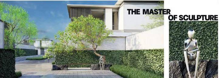 合院的景观设计体现了返璞归真,现代精致的生活本质,并且演绎出前瞻艺术,城市会客的隐贵礼序。将中国古典园林与西方园林取长补短,相得益彰,营造一轴两街三园,四坊十巷的通达之所,并融入现代工艺美术大师精典雕塑作品及名贵树种,安置于阡陌交错间的节点。艺术品装饰社区公共空间,主题阶段性布展式地呈现于业主的面前。横纵阡陌间点缀的艺术品与名贵乔木,宛如星河,异彩纷呈,呈现出自然园林与现代艺术融合的视觉盛宴。