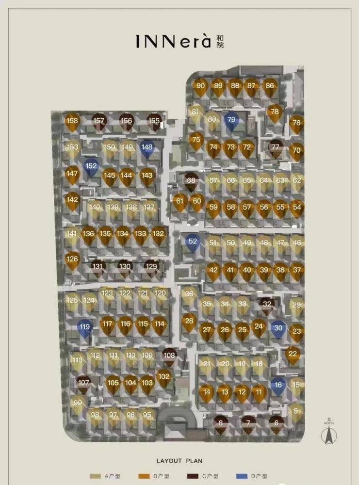 每个组团都有专属的景观植栽,分别是有竹、桂花、松、紫薇、鸡爪槭、樱花、乌桕、石榴等,通过不同的植物带来不同的美好寓意和风水,比如松寓意高雅坚韧,紫薇寓意官运亨通、情深义重,樱花寓意爱与希望,乌桕是院前风水树,寓意好运连连、自然生机、多子多福,石榴吉祥兴旺、多子多福等。整个合院区四时都有不同景致,春可赏叶,夏可观花,秋可见硕果累累,冬天也有长青浓阴,让人感受四时变化,体会季节不同的美。四个组团间是十条曲折的坊道,曲径通幽,也带来更好的围合感与私密性,为您打造私享空间景观。其中,社区内巷道宽约4.8至7.6米,保证了归家的舒适与邻里间的私密距离。