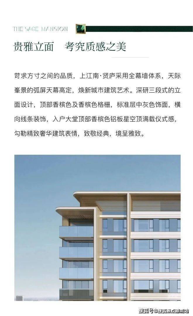 上江南贤庐售楼处电话:400-8118-224(售楼处最新电话)上海奉贤上江南贤庐官方电话:400-8118-224✔(官方售楼处预约看房热线)上江南贤庐建筑采用奉贤首个弧屏铝板幕墙,最小楼间距42米,层高3-3.5米,配合下沉式会所、1:1.8车位比等配置,提升居住舒适度。