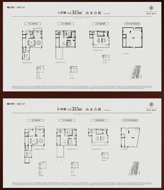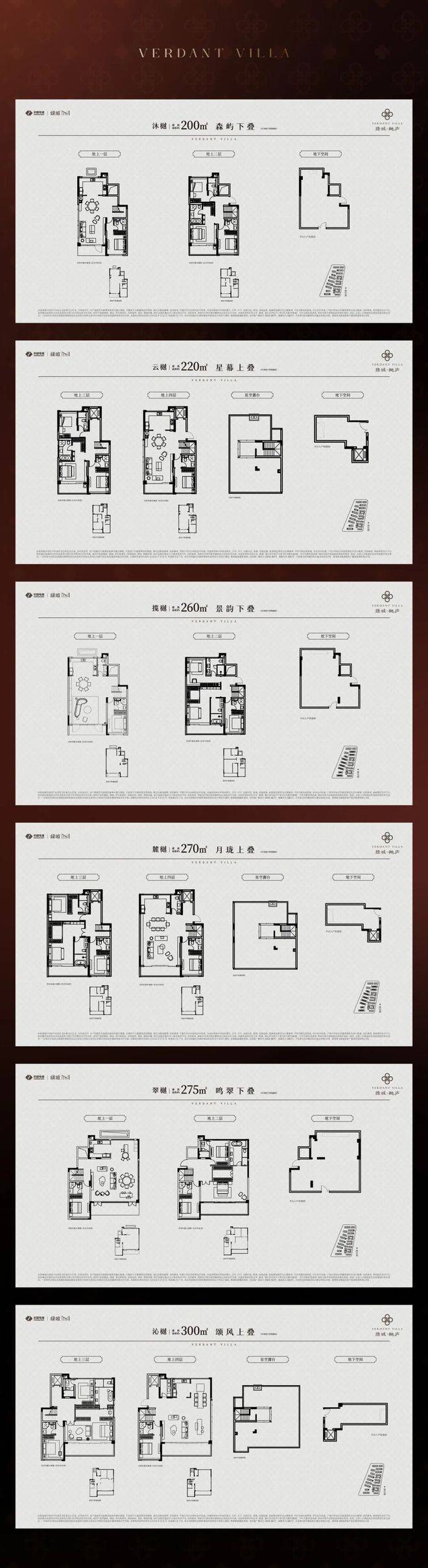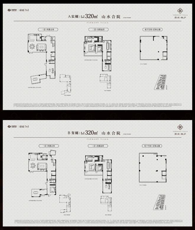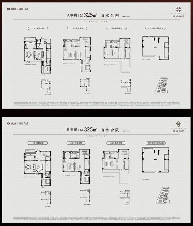 户型配置:建面约285-340㎡山水合院(2-3F),建面约200-300㎡诗境叠墅(4-6F)