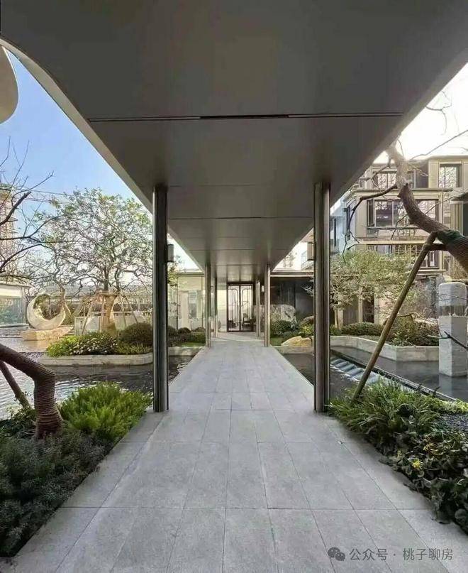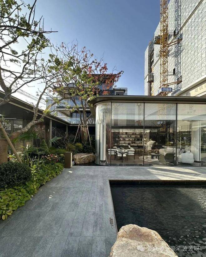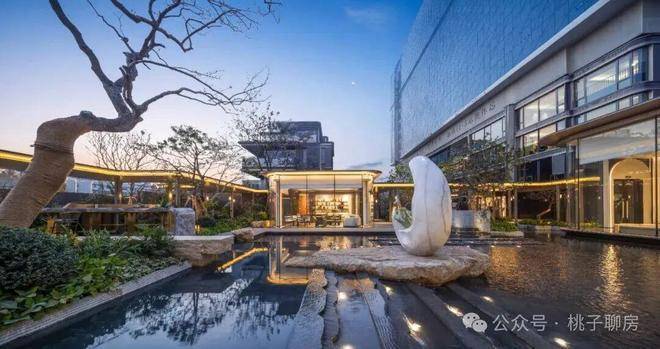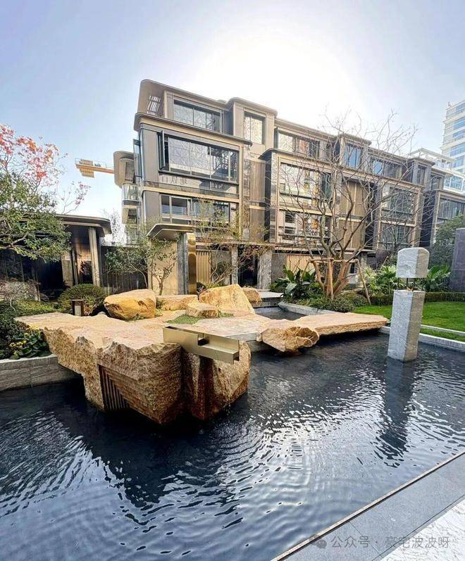 中央园林打造约1800㎡景观水院,以“水韵八境”为灵感,营造出江南园林般的居住氛围。